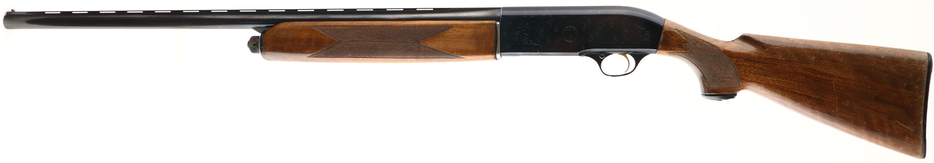 P. Beretta, Model AL2, CAL: 12 GA, MFG: 1970's-90's, SN: G50581, Semi Auto Shotgun, Choke: MOD, 2 3/4'', 28'' barrel. The original checkered & capped pistol grip stocks are very good & solid. There are scratches, scrapes, contusions & flaking to the original finish. There are also a couple of larger gouges on the stock. The original metal blue finish on the barrel rates 80%, while the anodized black receiver is excellent, with minor rub loss or scratches. Both sides of the receiver display simple scroll decorative engraving. Bore is excellent, with visible striations. Rib carries a bead front sight. Buttstock carries the original buttplate. FFL Req. - Value: 200 to 400