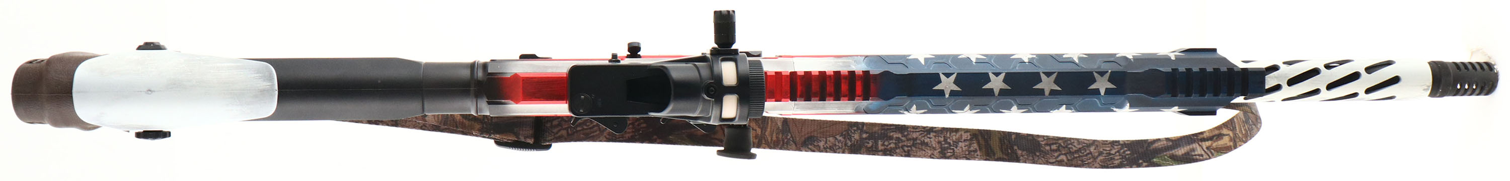 Citadel, Boss-25, CAL: 12GA, MFG: Modern, SN: 20-30412, Semi Auto Shotgun, 18'' /20 3/4'' with muzzle brake. The synthetic stock & rubber grip are excellent, with light handling wear. The American Flag Cerakote finish is excellent. Bore is excellent. Muzzle brake. MEPRO M21 Reflex sight. Upper Picatinny rails for optics & accessories. Camo sling. Comes with (3) additional magazines. FFL Req. - Value: 300 to 400