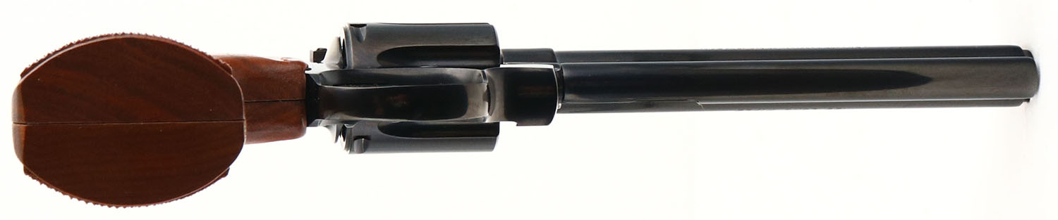 BOXED, Colt, Diamondback, CAL: 22LR, MFG: 1978/79, SN: R40797, Double Action Revolver, 6'' barrel. The Colt Diamondback was introduced as a deluxe model in 1966, inspired by the successful Colt Python, in calibers of .22 LR, .22 WMR & .38 SPL. The Diamondback is built on the smaller ''D frame'', same as used in the Detective Special. It has a 6-shot swing-out cylinder & was available in blue or nickel finishes. It has a wide serrated target hammer, ventilated rib, fully adjustable target quality sights, & full-length barrel underlug. The left side of barrel is stamped ''DIAMONDBACK .22 LONG RIFLE''. They came with Gold tone Colt medallions in the checkered Walnut grips. The grips on this example are excellent, with a small glue repaired edge chip on the top front side of the right grip. The high polish blued finish rates 99%. Bore is near mint. The satin finished top of the ventilated rib barrel holds a screw height adjusting ''U'' notch rear sight & front blade sight. Original hang tag still present on the trigger guard. Comes in the original SN matching Colt wood grain box, with related paperwork. Box has some edge, corner & shelf wear. A highly collectible Colt revolver. FFL Req. - Value: 1500 to 2000