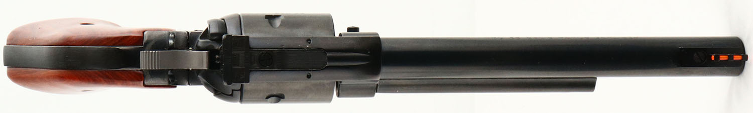Heritage Mfg. Co., Heritage Rough Rider, CAL: 22 MAG, MFG: Modern, J86216, Single Action Revolver, 6 1/2'' barrel. The wood grips are excellent, with minor handling marks. The metal blue finish on the barrel rates 99% & the matte black finish on the frame rates 95%. Bore is excellent. Adjustable square notch rear sight & orange fiber optic rail front sight. FFL Req. - Value: 100 to 200