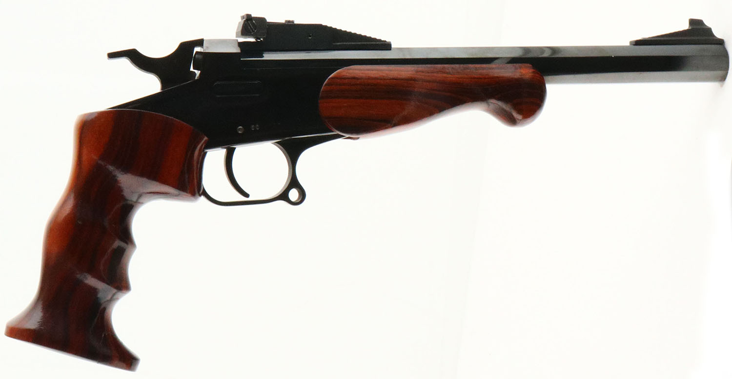 Sterling Arms, X-Caliber, CAL: 44 MAG, MFG: Late 70's early 80's, SN: 0001620, Single Shot Pistol, 10'' octagon barrel. The original wood grip is good & the forend is excellent. The grip has a repaired toe chip & a 2'' grain crack from the top of the grip to the middle. The metal blue finish rates 98% overall. Bore is excellent. Factory sights. FFL Req. - Value: 300 to 500