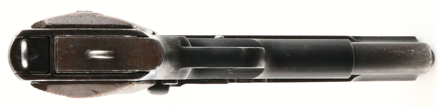 Condition: The checkered double diamond, wood grips are very good with wear, small dings, & scratches. The blued metal finish rates 80% overall with spots of holster wear at the end of the slide, finish thinning from hand wear, & various small scratches nicks, & wear spots from military use. The left side of the slide is marked with two Norwegian crown proofs, ''11.25m/m AUT. PISTOL M/1914'', & the S/N. the left side of the frame is marked with the S/N. the right side of the slide is marked ''1926'' & a proof mark. All Serialized parts are MATCHING other than the barrel which is a surplus GI, Colt M1911A1 barrel. The bore is Good its bright with worn, but still visible rifling. The slide holds a blade front sight with a U-notch rear sight. Pistol comes with one mag that has a lanyard loop, no markings. A nice example of miliary pistol with honest wear from use. FFL or C&R Req. - Value: 1000 to 2500