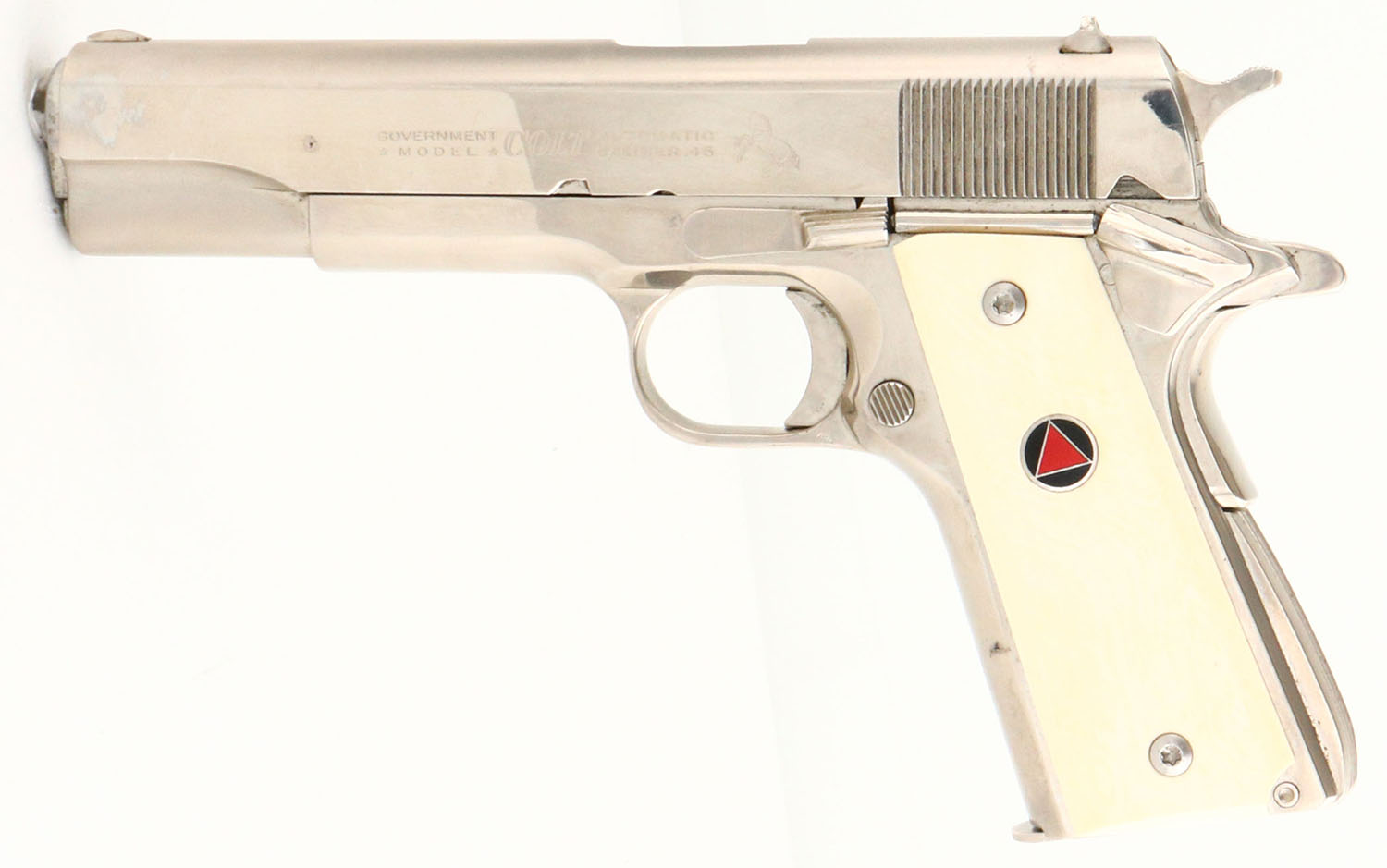 Colt, Government Model 1911- Pre-70 Series, CAL: 45, MFG: 1969, SN: 326891-C, Semi Auto Pistol, 5'' barrel. The Delta Elite faux ivory grips are excellent. The original nickel finish is excellent, with areas of haze, mostly on the right side & a couple areas with light spotting. Bore is excellent. Square notch rear sight & small blade front sight. FFL or C&R Req. - Value: 1000 to 1800
