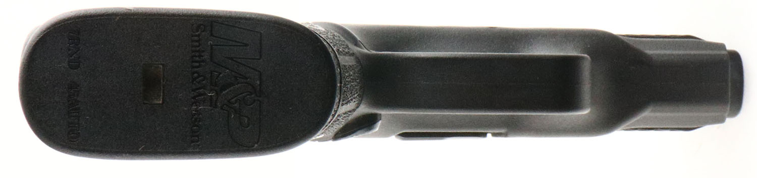 Smith & Wesson, M&P 45 Shield M2.0 Performance Center, CAL: 45 ACP, MFG: Modern, SN: JFW8971, Semi Auto Pistol, 3 1/4'' barrel. The S&W textured polymer grip frame is excellent, with light wear to the sides of the frame. The matte black finish on the ported slide rates 98%. Bore is excellent. Two-dot red fiber optic rear sight & green fiber optic front sight. The rear sight has some rust. Factory mag. FFL Req - Value: 350 to 550