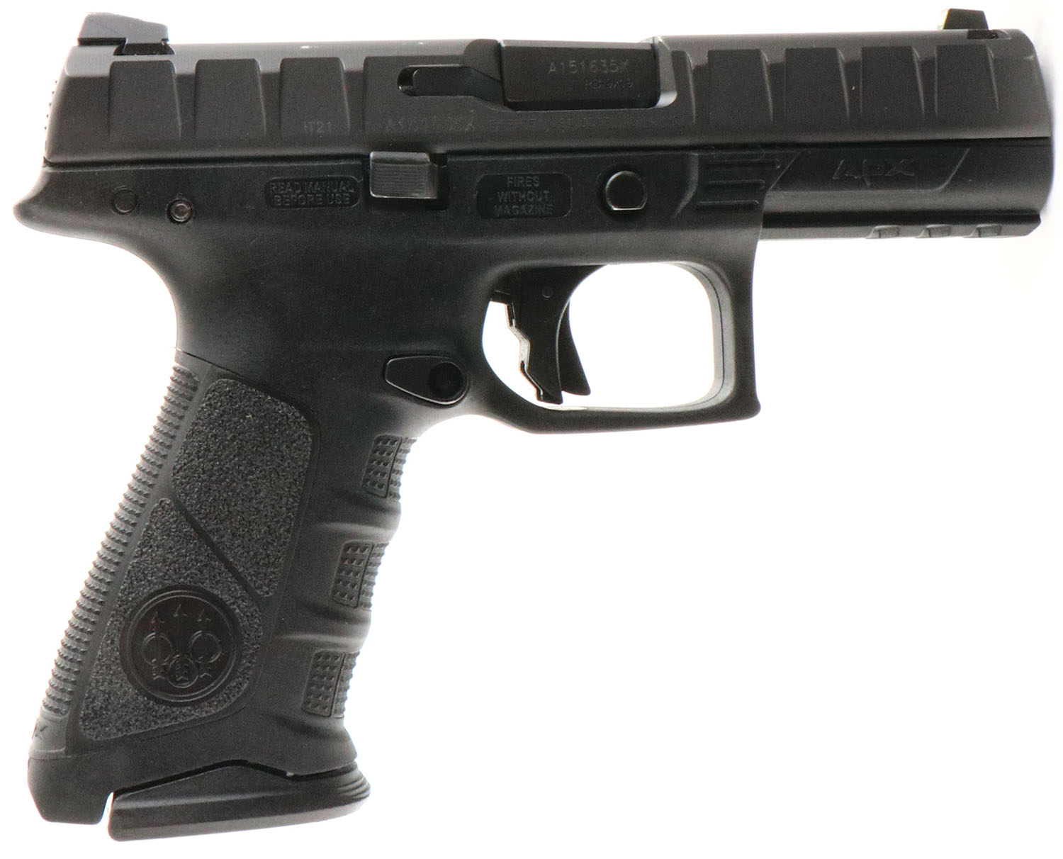 CASED, Beretta, APX, CAL: 9mm, MFG: Modern, SN: A151635X, Semi Auto Pistol, 4'' barrel. The synthetic & checkered polymer grip frame is excellent. The matte finish on the slide is excellent. Bore is excellent. Factory contrast sights. Comes in factory hard case, with related paperwork, extra grip panels, hard plastic holster, (5) extra mags, lock & cleaning brush. FFL Req. - Value: 300 to 500