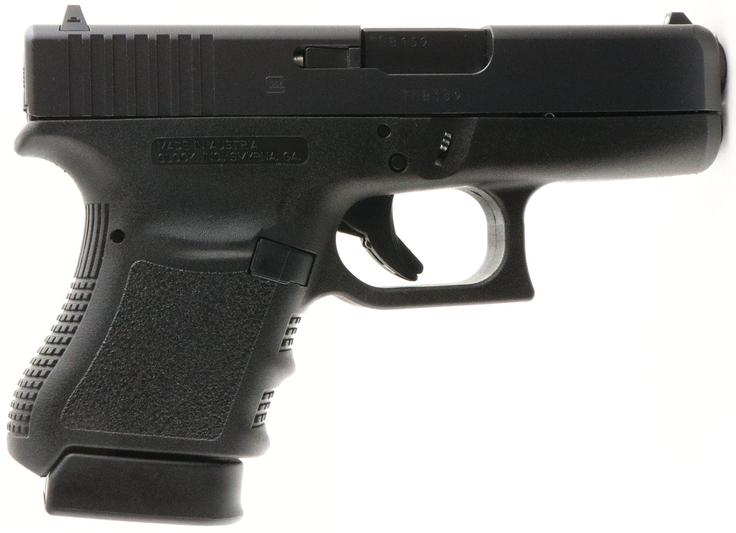 CASED, Glock, Model 36 Gen 3, CAL: 45 ACP, MFG: Modern, SN: TNB159, Semi Auto Pistol, 3 3/4'' barrel. The synthetic & checkered polymer grip frame is excellent. The matte black finish on the slide rates 99%+. Bore is excellent. Factory contrast sights. Comes in SN match hard case, with extra mag, speed loader, related paperwork & cleaning rod/brushes. FFL Req. - Value: 400 to 550