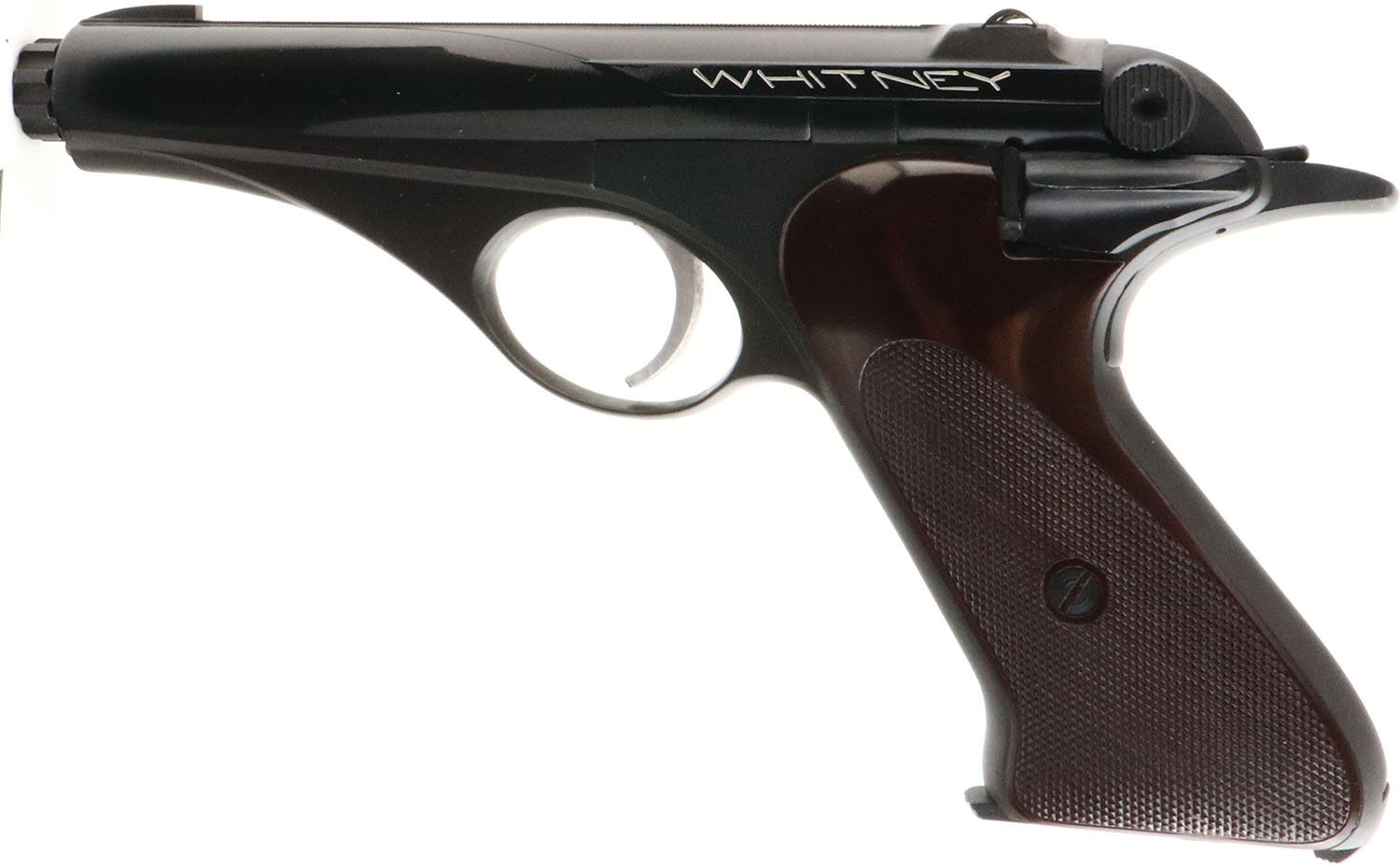 SCARCE & DESIRABLE, Whitney Firearms Co., Wolverine, CAL: 22LR, MFG: 1950's, SN: 27094, Semi Auto Pistol, 4 5/8'' barrel. The history of this ''Atomic Age'' pistol is a short, but interesting one. This lot includes the book ''THE WHITNEY WOLVERINE .22 CALIBER SEMI-AUTOMATIC PISTOL by ANTONIO J. TAGLIENTI''. This book covers the entire story of the Whitney Wolverine pistol, the inventor, his journey, the rise & fall of the ''Wolverine'', & the legacy of the pistol. The first gun rolled off the assembly line in 1956, but production only reached 13,371 units total.