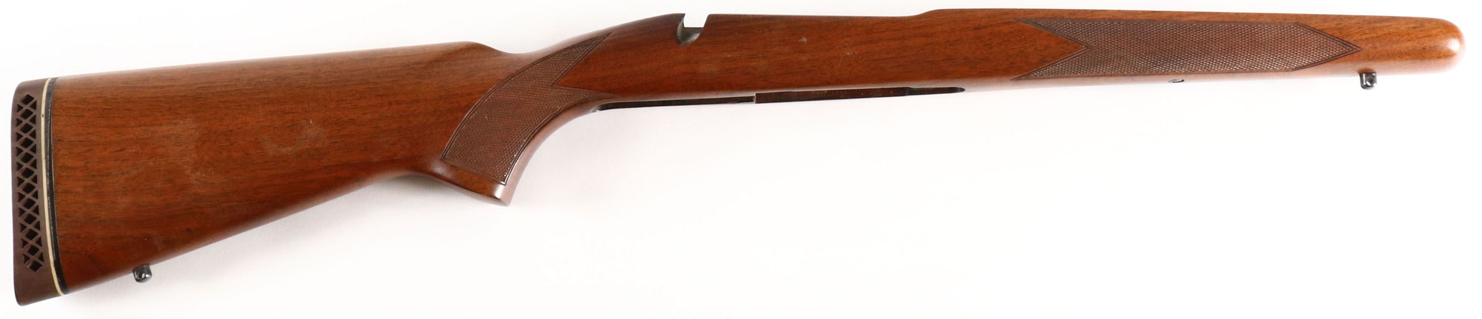 Wood rifle stock, semi-pistol grip, checkered wrist & forend, rubber recoil pad, has front & rear sling studs. Grade: Excellent - Value: 10 to 100