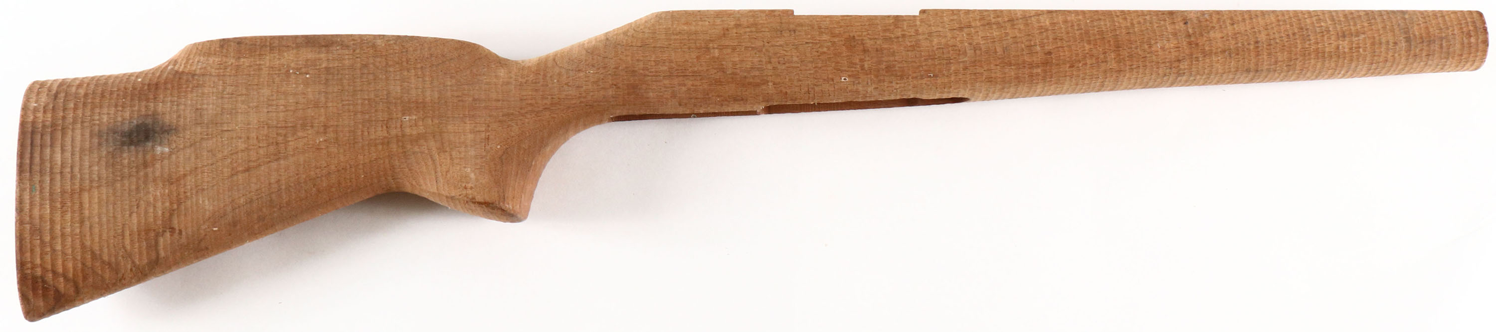 Unfinished wood rifle stock, marked M70, semi pistol grip, cheeked, no buttplate. Grade: Excellent - Value: 10 to 100
