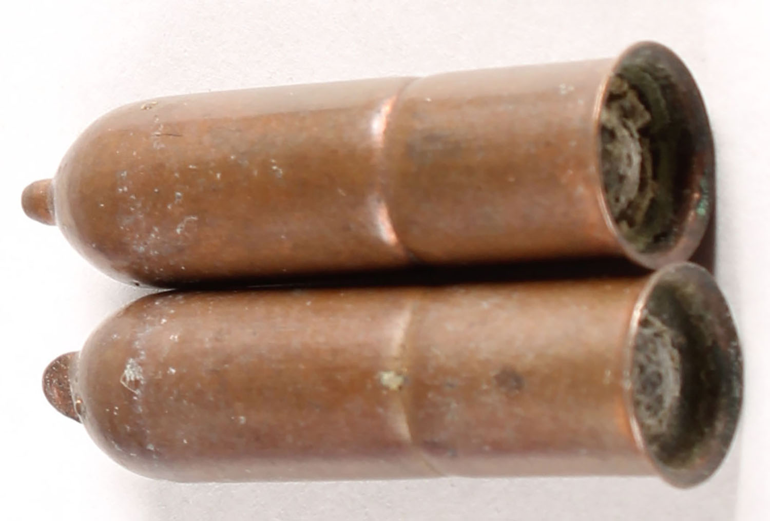 Lot of 2. .32 Teatfire. NHS. Copper Case. 1 round and 1 flat teat. Grade: Excellent - Value: 20 to 40