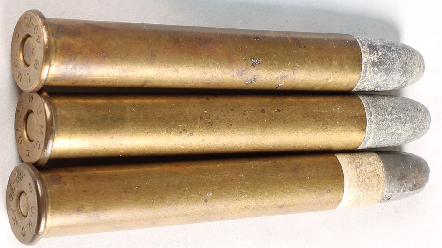 Lot of 3. 40-70 Sharps Straight (2.5'' case). HS:''U.M.C. H 40-70 S''. (1) FN PP Lead. (2) FN Lead. - Value: 30 to 50