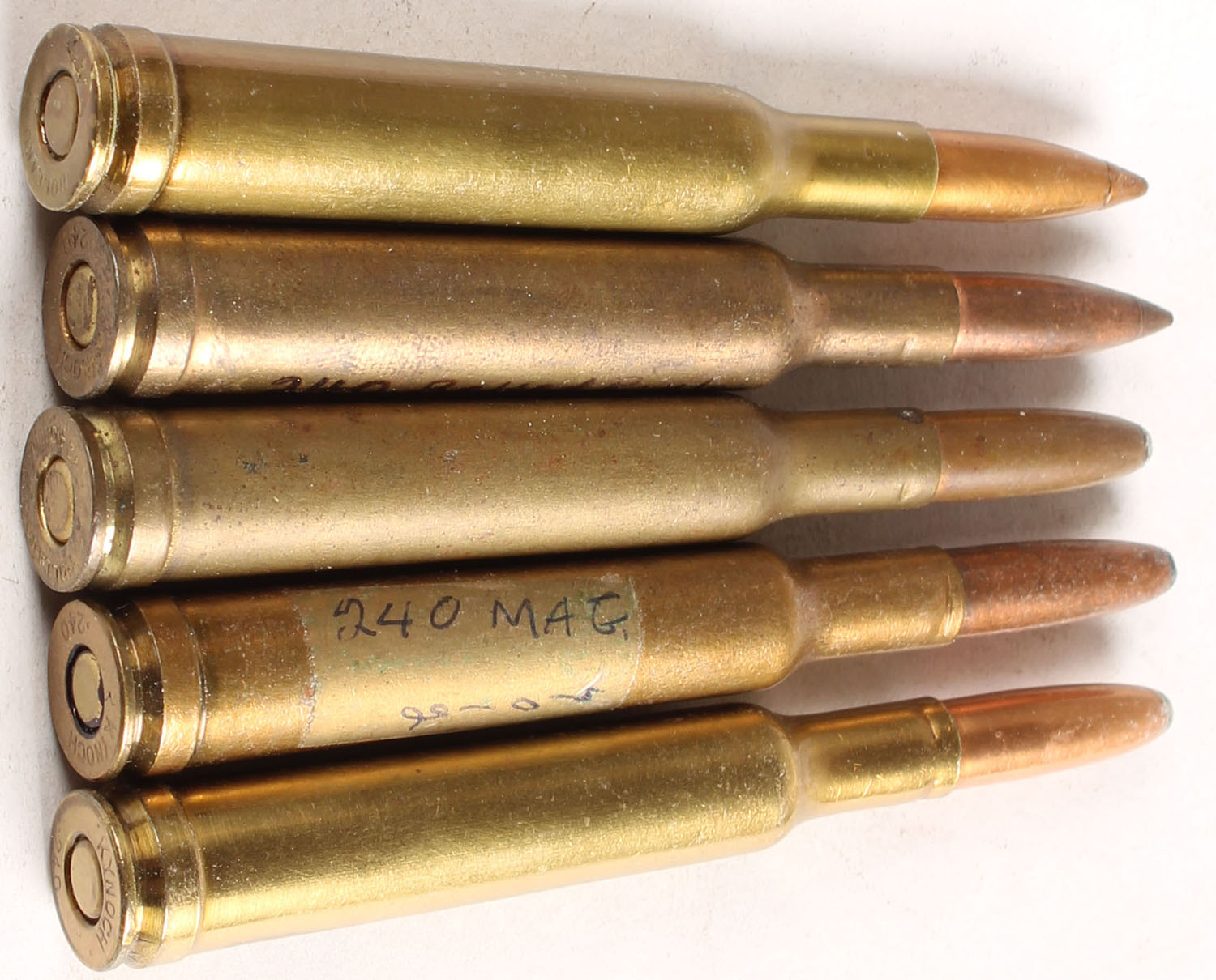 | Lot of 5. .240 Belted Magnum. (2) HS:''KYNOCH .240''. PT...