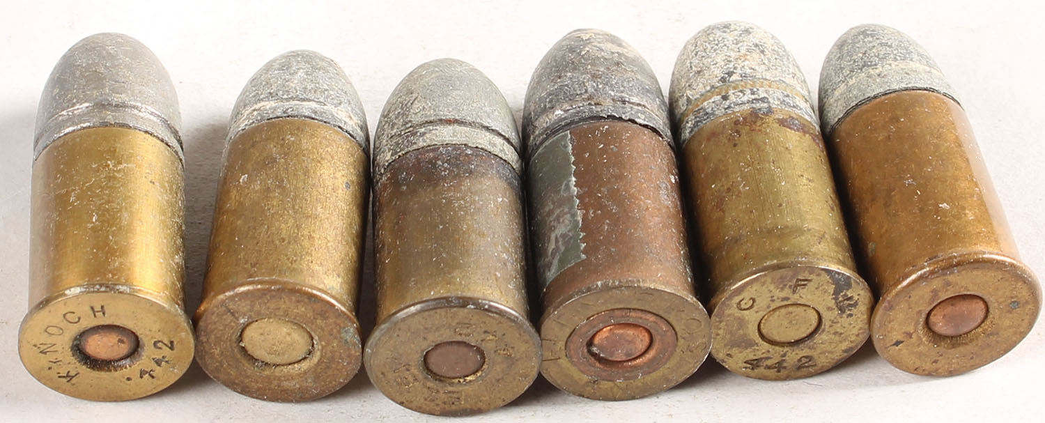 Lot of 6. .442 Revolver. (2) NHS. (2) HS:''ELEY 442''. (1) HS:''KYNOCH 442''. (1) HS:''G F L 442''. All RN Lead - Value: 30 to 50