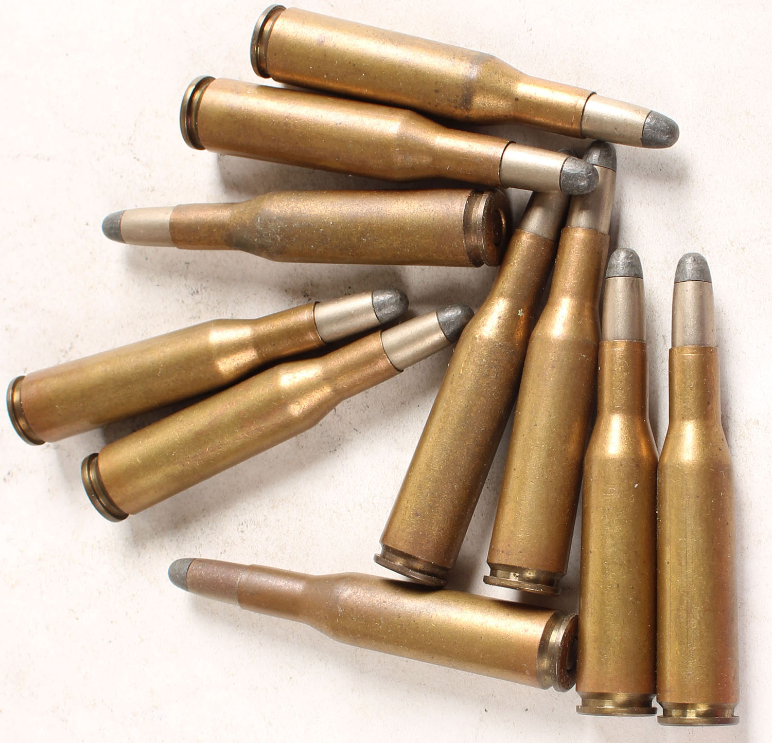 Lot of 10. 6.5x57 Mauser. HS:''DWM K 457A K''. RN CN SP. Grade: Very Good ++ - Value: 6 to 80