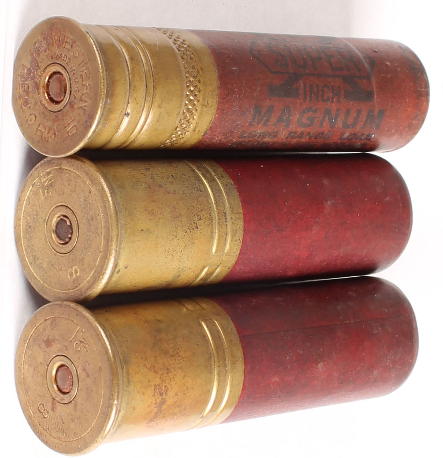 Lor of 3 shot shells, 2 8 ga Remingtons & 1 10ga Western Record. Grade: Very Good ++ - Value: 10 to 50