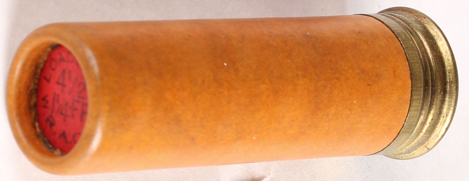 TW: W.R.A.Co. 4 1/2 - 1 1/4 FF, HS: Winchester NUBLACK No 10, tan case, 2 3/4''. Grade: Excellent - Value: 6 to 30