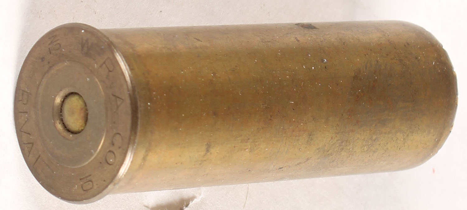 H/S= ''W.R.A.Co. Rival No 10'', 2 1/2'' OAL, loaded brass, Sawtooth, Shot size 00 Buck. Grade: Excellent - Value: 6 to 30