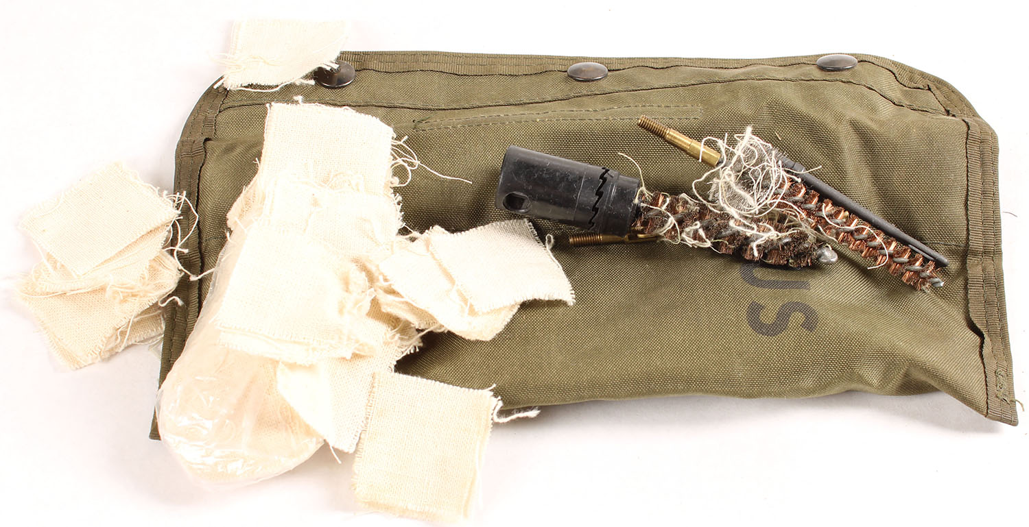 US, M16A1 cleaning kit, appears to have all rods, brushes & patches. Grade - Value: 10 to 30