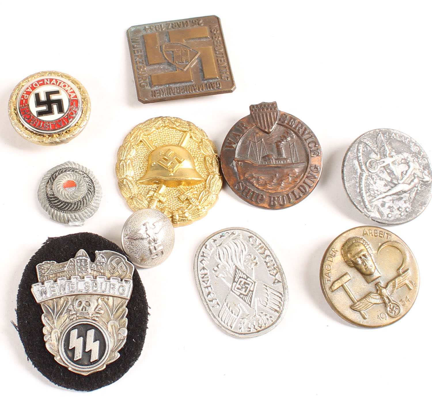| Lot of 10 German/Nazi medals, pendants, Pinbacks. Grade: Excelle...