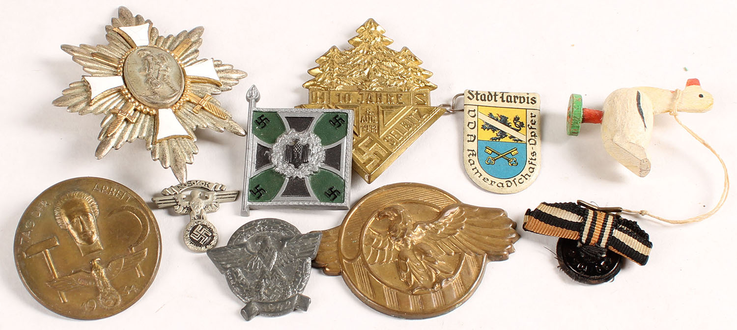 | Lot of 10 German/Nazi medals, pendants, Pinbacks. Grade: Excelle...