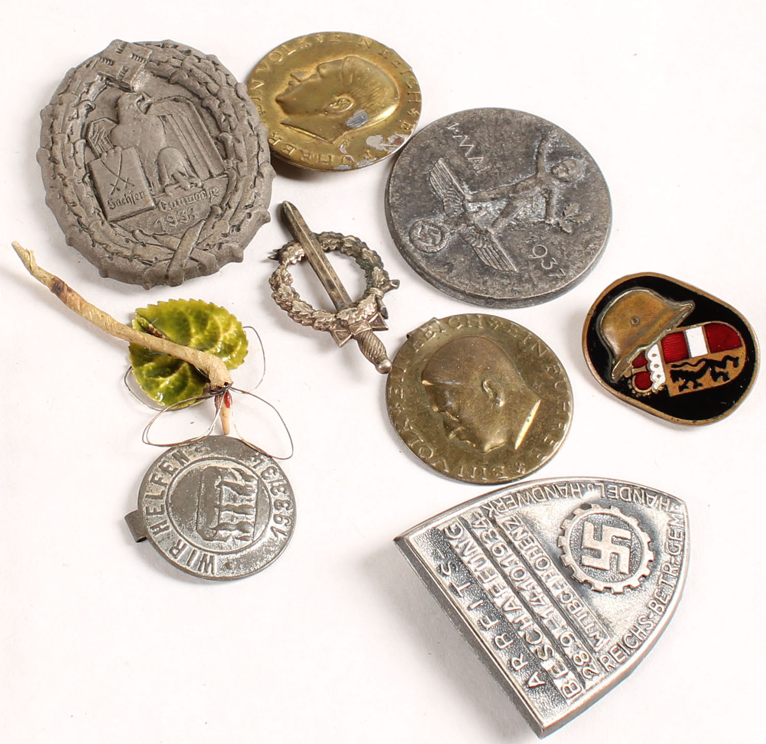 | Lot of 10 German/Nazi medals, pendants, Pinbacks. Grade: Excelle...