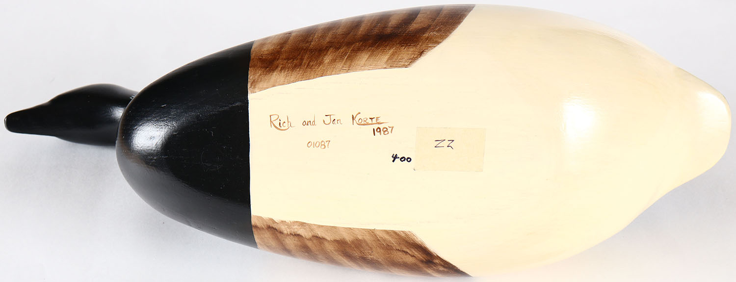 Black Brant by Rich & Jan Korte, Hollow body with beautiful original paint, GE, signed on bottom, Sn# 01087, dated 1987, structurally excellent, 18'' OAL. Grade: Excellent ++ - Value: 50 to 100