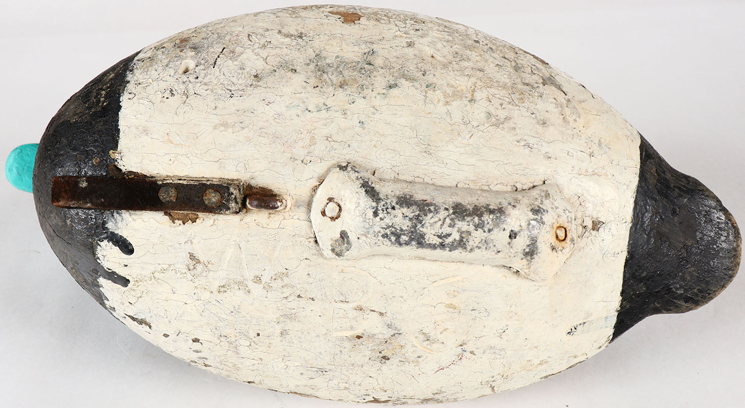 Bluebill Drake decoy by MD unknown carver, PE, solid wood, old repaint, structurally excellent, 13'' OAL. Grade: Very Good - Value: 20 to 40