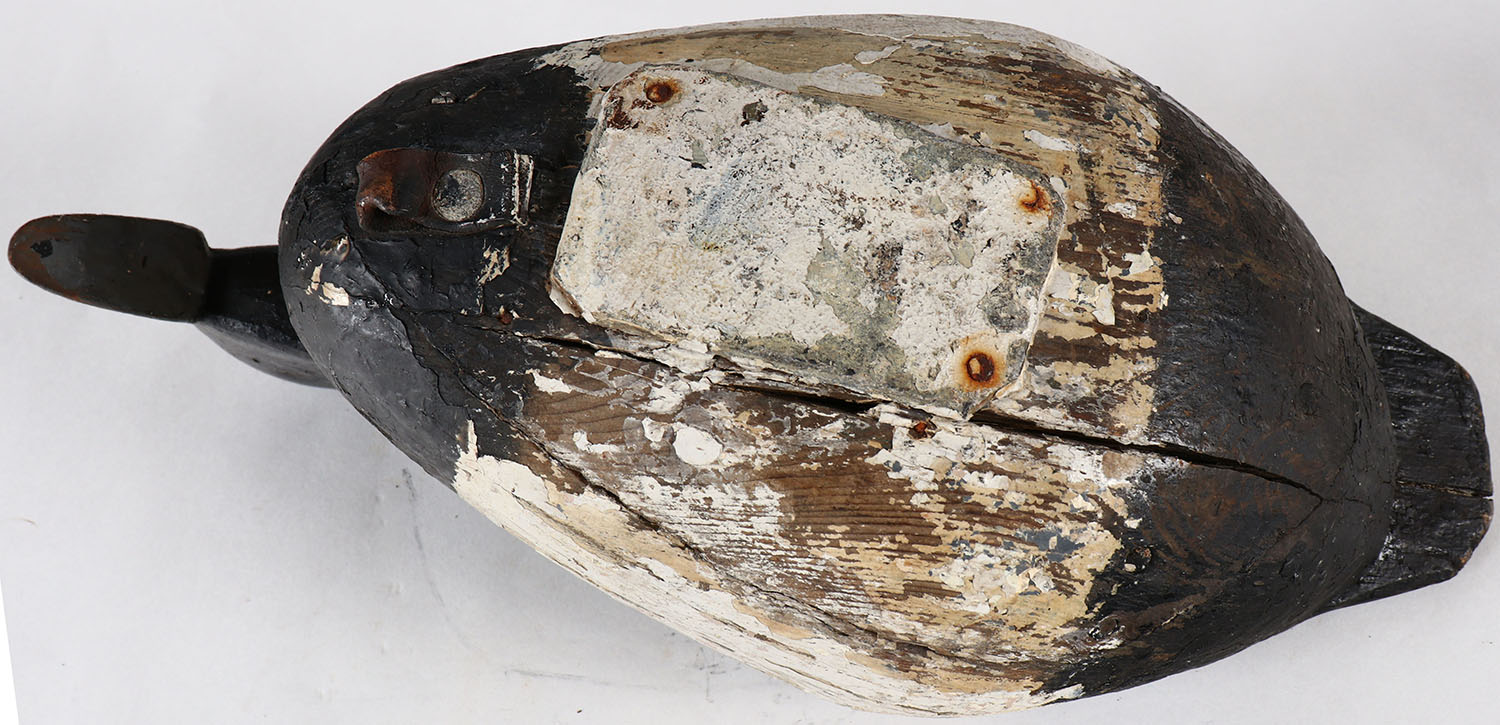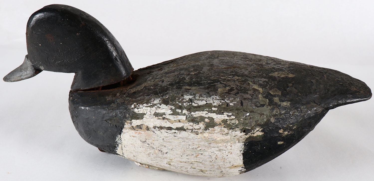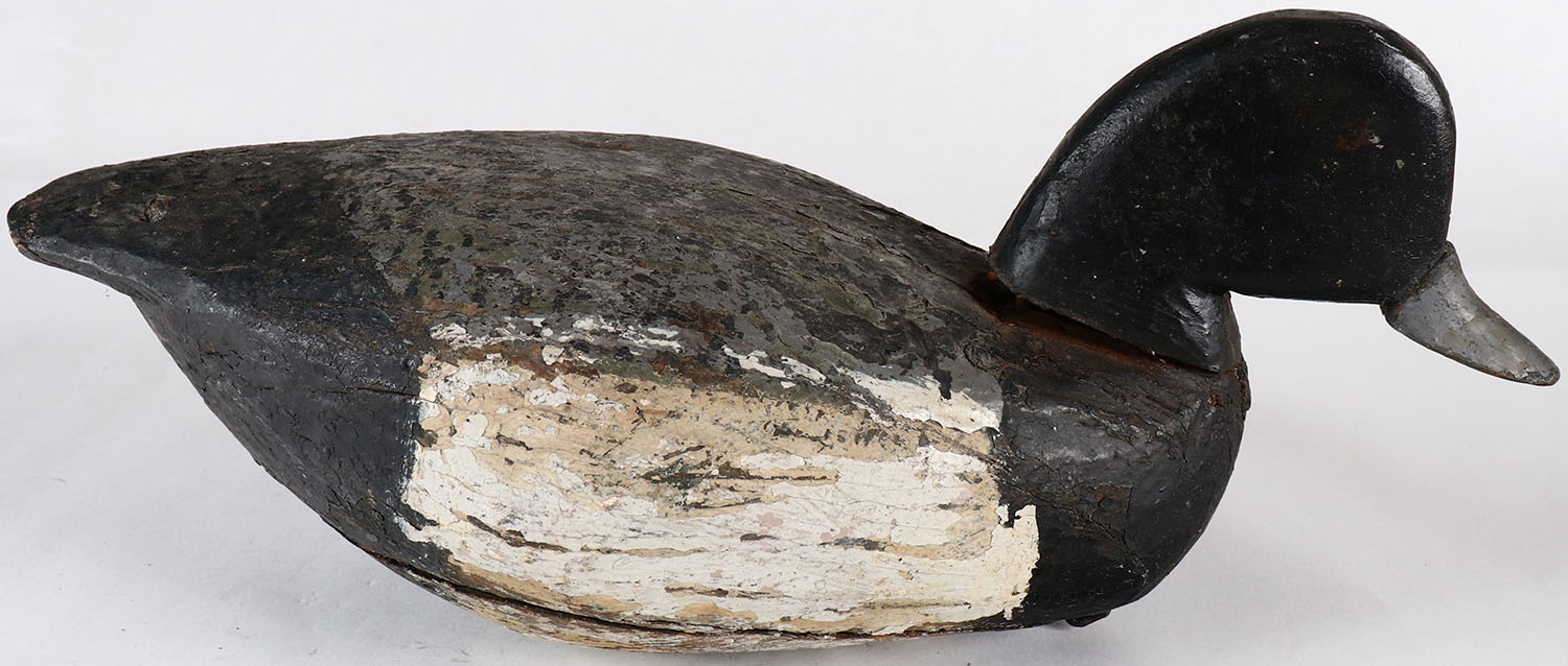 Bluebill Drake decoy by unknown carver, PE, solid wood, old repaint, 14 1/2'' OAL. Grade: Good ++ - Value: 20 to 40