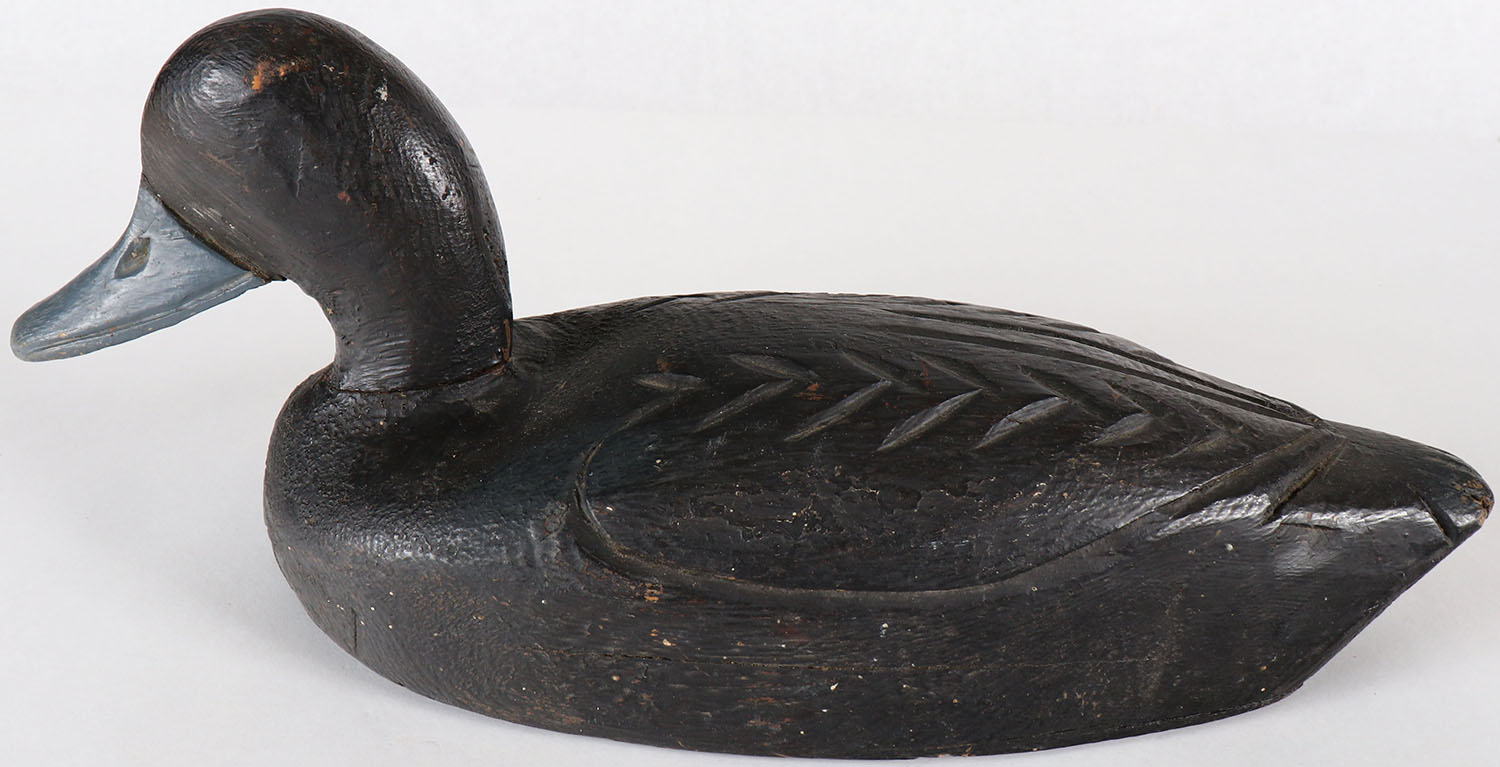 Bluebill Drake by unknown Canadian carver, PE, solid wood, original paint, 13 1/2'' OAL. Grade: Very Good ++ - Value: 20 to 40