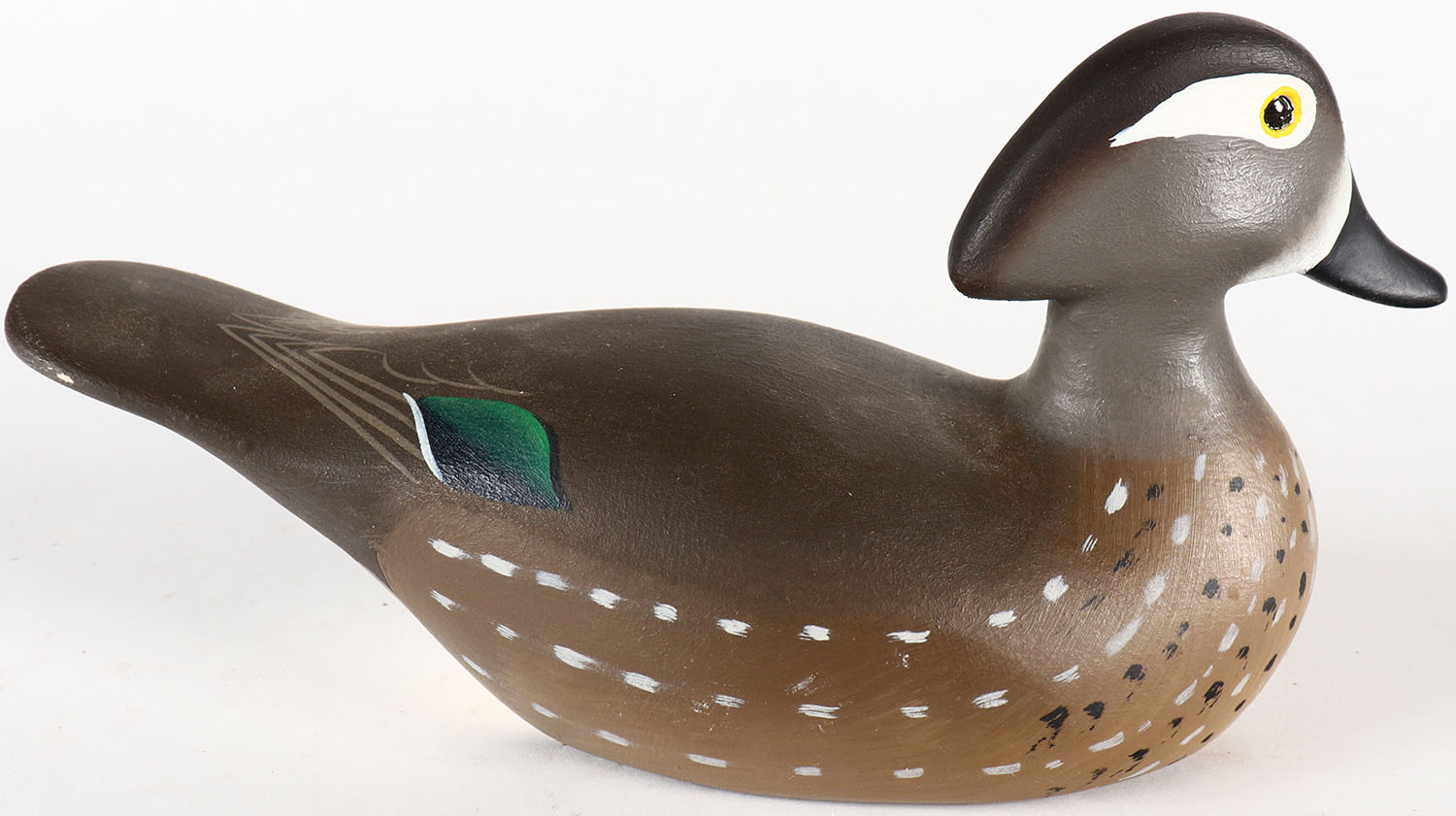 Pair of Miniature Woodducks by Allan Schauber of Chestertown MD, GE, solid wood, mint original paint, signed & dated on bottom, 8'' OAL. Grade: MINT - Value: 80 to 200