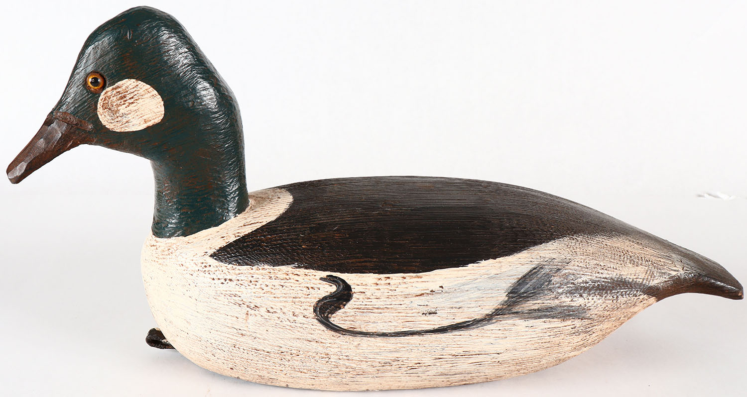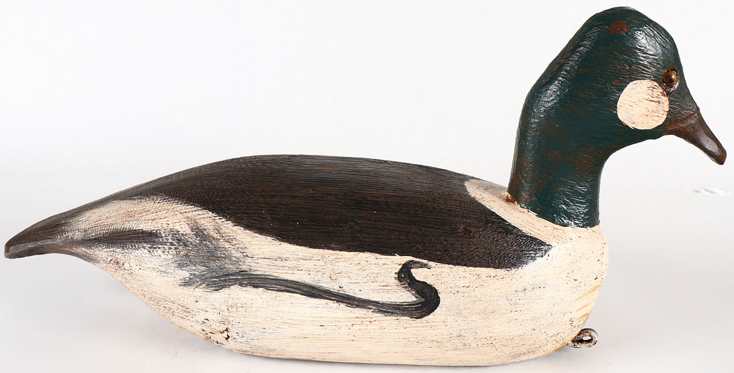 Goldeneye Drake by unknown caver, marked F&S, GE, solid wood, original paint, structurally excellent. Grade: Excellent - Value: 20 to 40