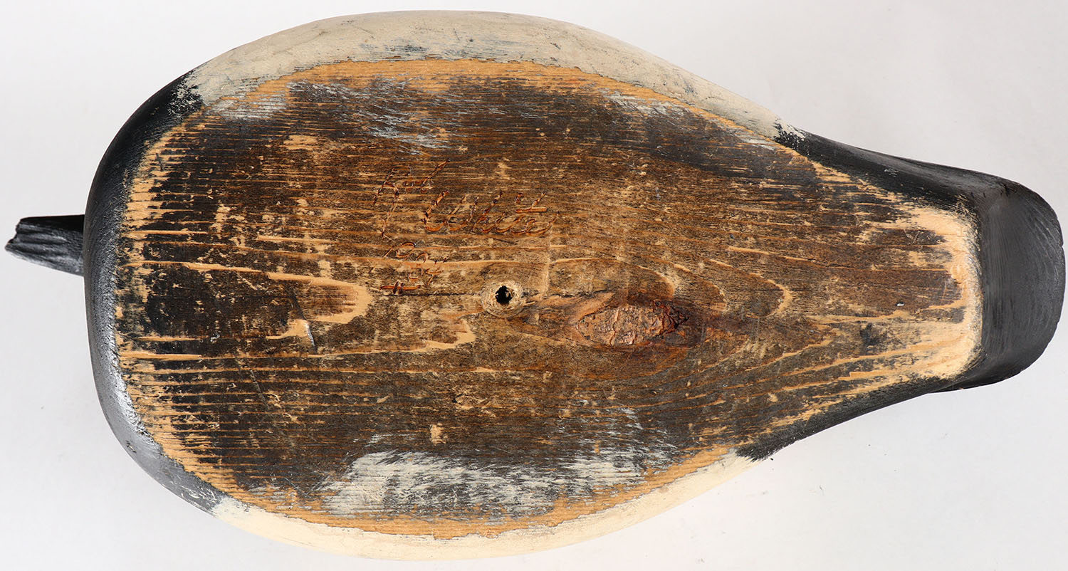 Canvasback Drake by unknown carver, GE, solid wood, apparent original paint, bill tip chip. Grade: Very Good ++ - Value: 10 to 30