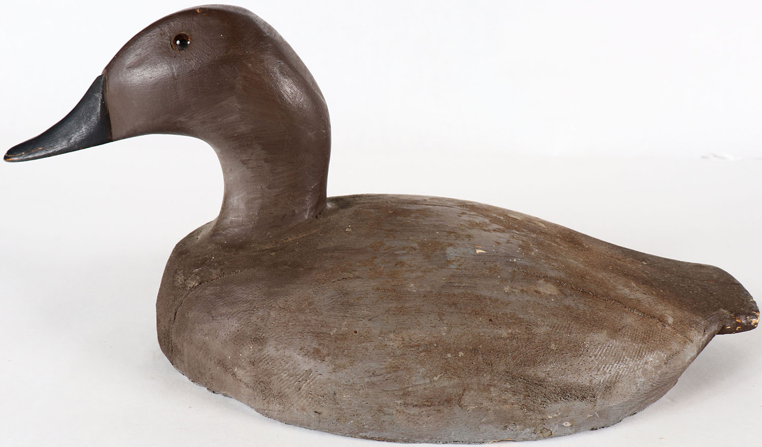 Canvasback Hen by unknown MI maker, GE, solid balsa wood, original paint, structurally excellent. Grade: Excellent - Value: 10 to 30