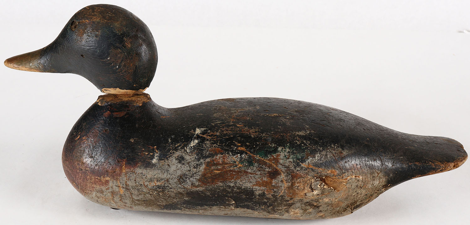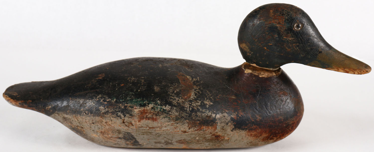 Mallard Drake by Mason Decoy Company, Detroit, MI, 1896-1924, Standard Grade, glass eyes one missing, solid wood, combination of original paint hunter repaint, head swives. Grade: Very Good - Value: 20 to 60