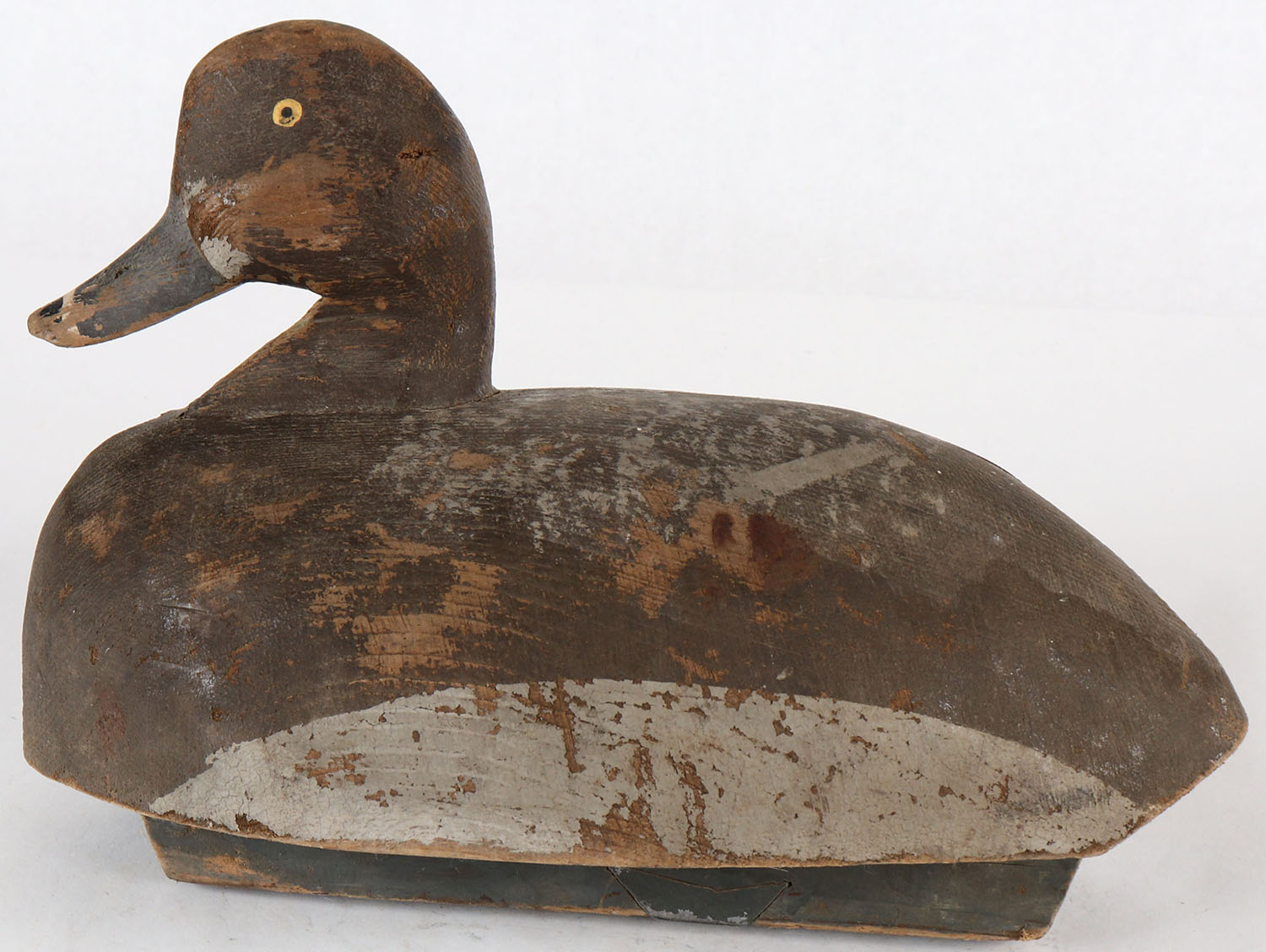 Bluebill Drake by unknown maker, PE, hollow wood, original paint shows wear. Grade: Very Good + - Value: 10 to 30