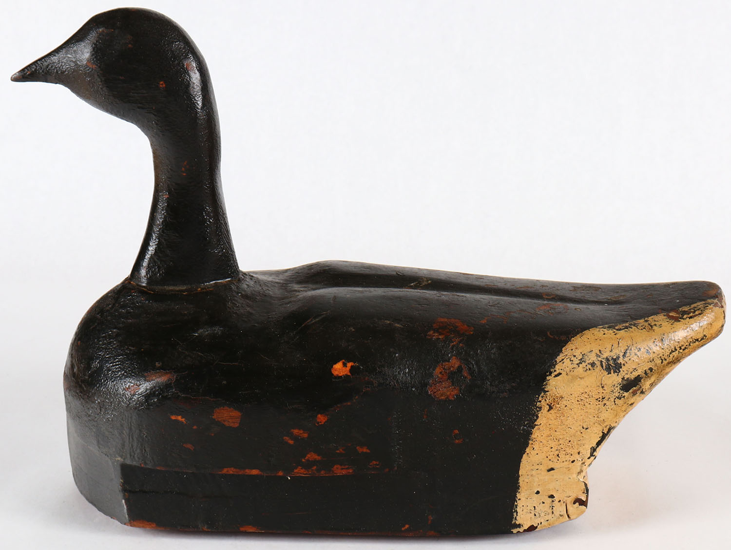 Black Brant by unknown maker, no eyes, hollow body with bottom board, old repaint, 14'' OAL. Grade: Very Good ++ - Value: 20 to 50