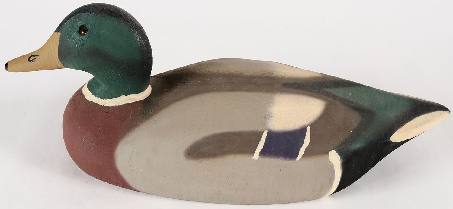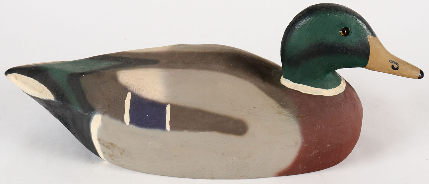 Mallard Drake by Herters Decoy Co., Waseca, MN, 1893 series, glass eyes, solid wood, original paint, structurally excellent, unmarked on bottom. Grade: Excellent ++ - Value: 40 to 100