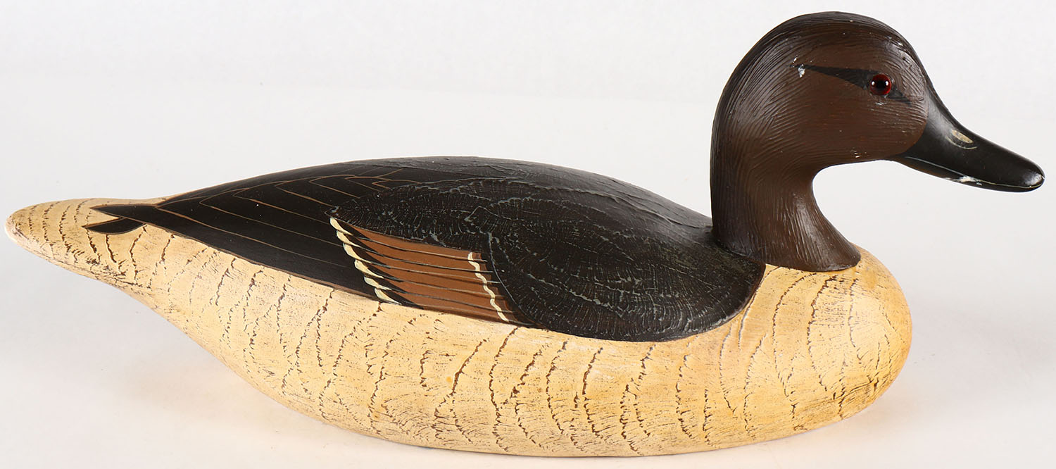 Pintail Hen by Wildfowler Decoy Co. Babylon NY, GE solid wood, orignal paint, stamped on bottom. Grade: Excellent - Value: 20 to 40