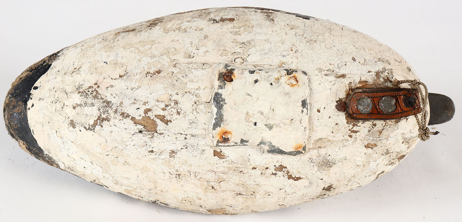 Bluebill Hen attributed to Doug Jester, Chincoteague, Virginia, PE, solid wood, old repaint, shows wear, structurally excellent. Grade: Very Good - Value: 26 to 50