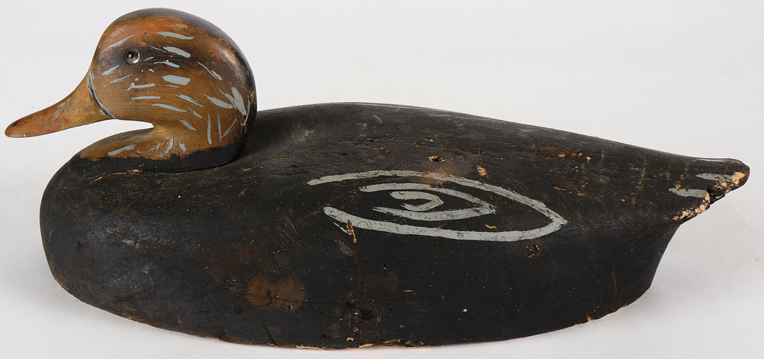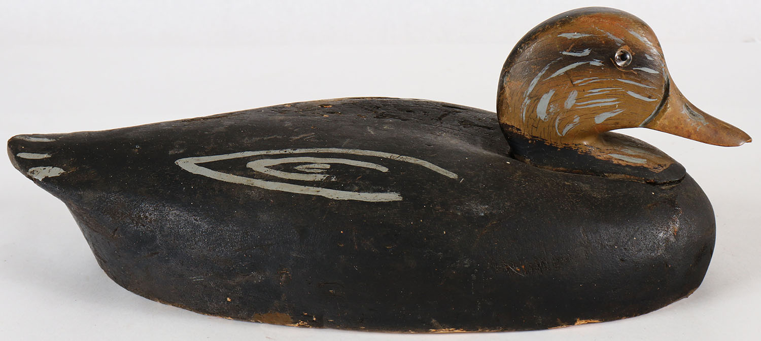 Black Duck by Wildfowler Decoy Co., GE solid wood, repaint. Grade: Very Good ++ - Value: 10 to 30