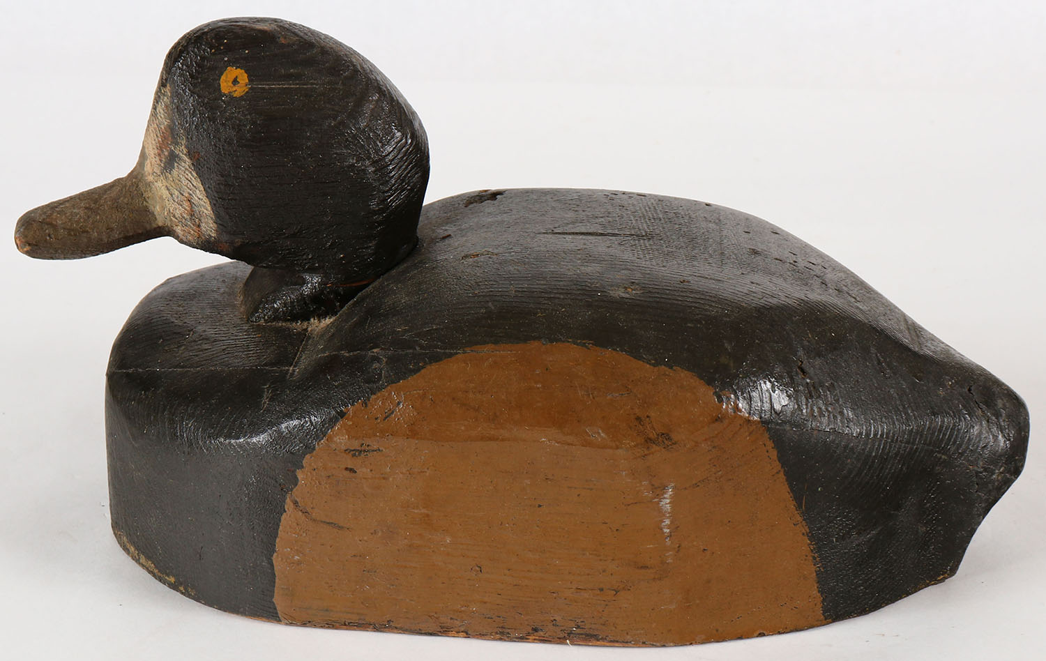 Bluebill Hen by unknown carver, GE, solid wood, original paint. Grade: Excellent - Value: 20 to 40