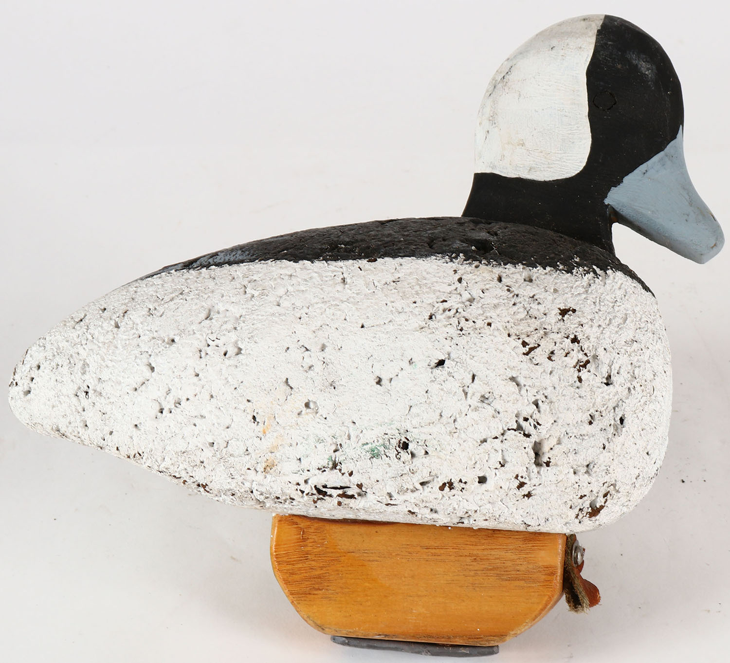 Bufflehead Drake by unknown maker, No eyes, solid cork body, wood head, original paint, structurally excellent. Grade: Excellent - Value: 10 to 40