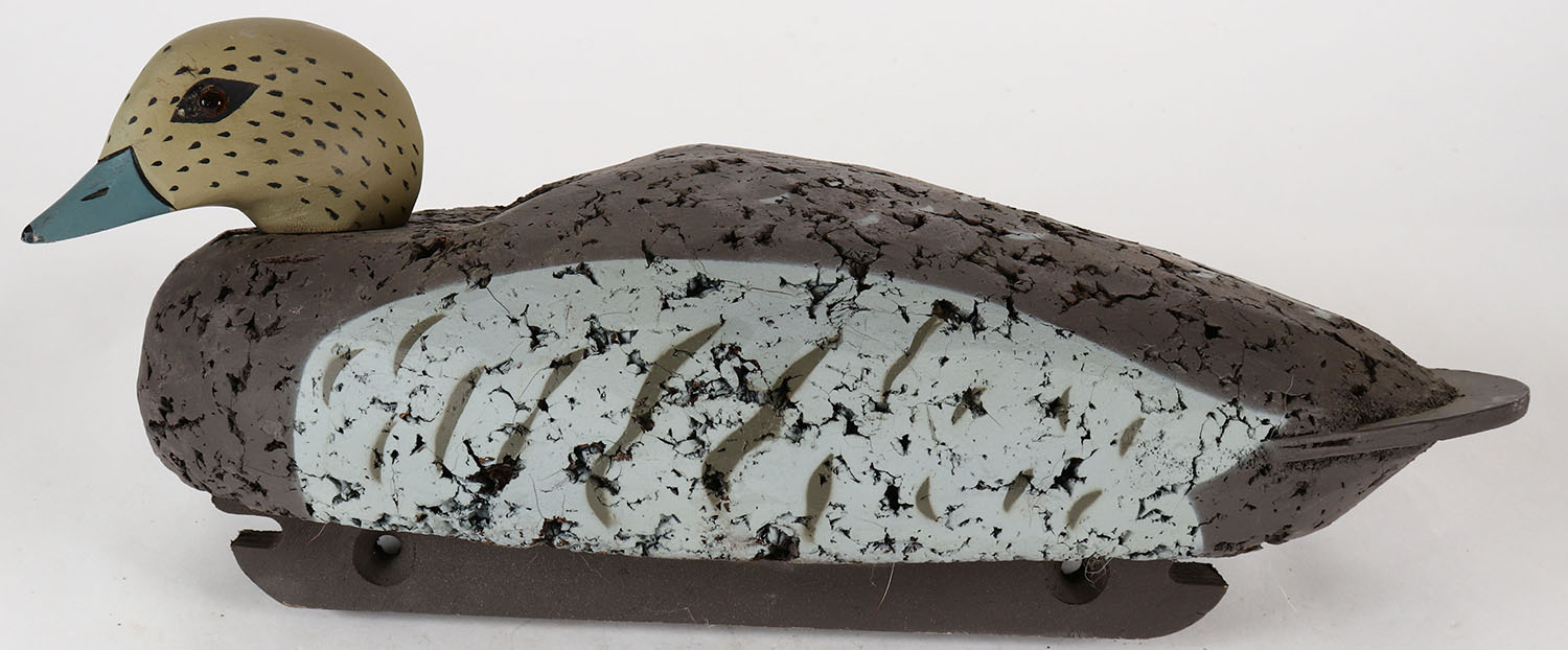 Widgeon Hen by LL Bean, marked on keel, glass eyes, solid cork body, wood head, original paint, structurally excellent. Grade: Excellent ++ - Value: 30 to 60