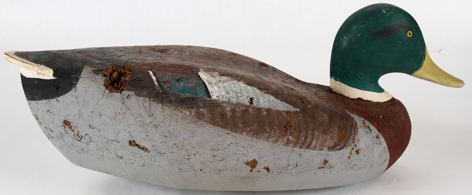 Mallard Drake by unknown maker, PE, solid cork body, wood head, original paint, structurally excellent. Grade: Excellent - Value: 10 to 50
