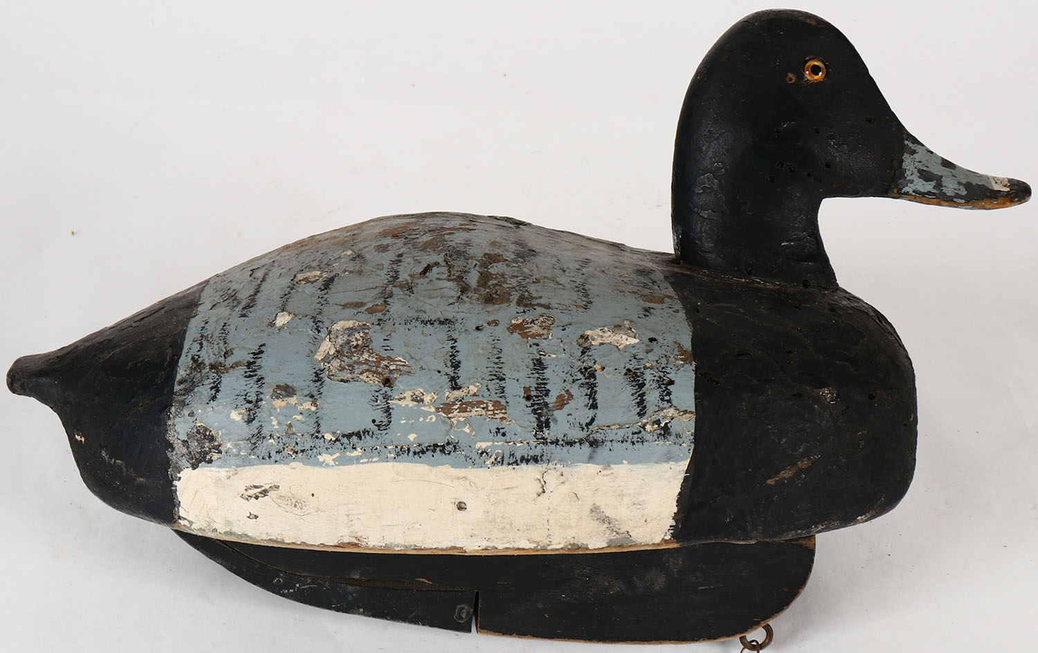 Bluebill Drake by unknown maker, GE, solid wood, wood head, old repaint, structurally excellent. Grade: Excellent - Value: 20 to 50