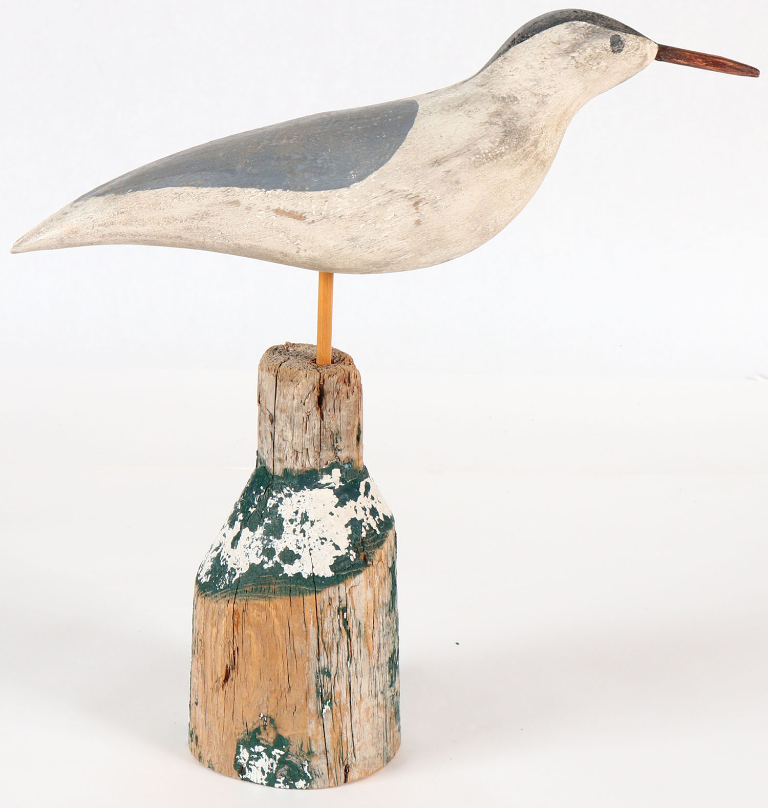 Seagull by unknown maker, PE. Solid wood, original paint, on stand, 13'' tall. Grade: Excellent - Value: 10 to 30