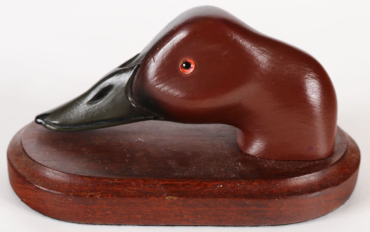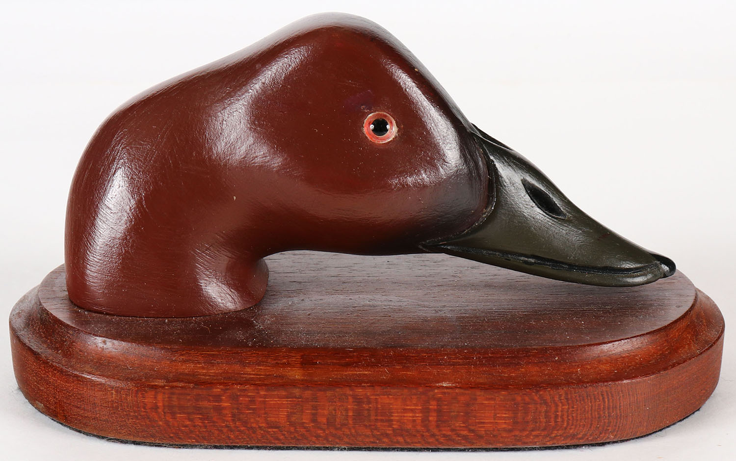 Canvasback Drake Head by Walter J Ruppel, circa 1978, signed on bottom, these were heads Walter had put away & then mounted on a base in 1978. Grade: Excellent ++ - Value: 20 to 40