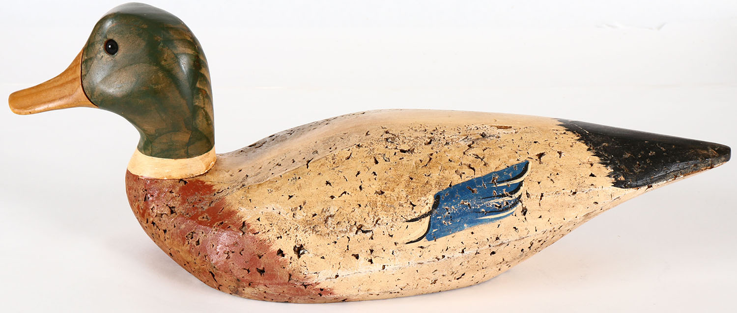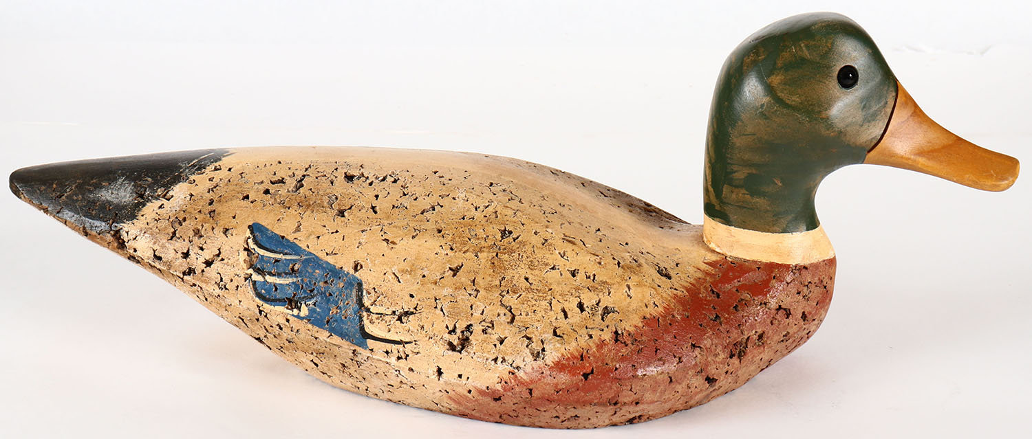 Mallard Drake by unknown maker, GE, cork body with wood head & wood center, original paint. Grade: Excellent - Value: 10 to 50