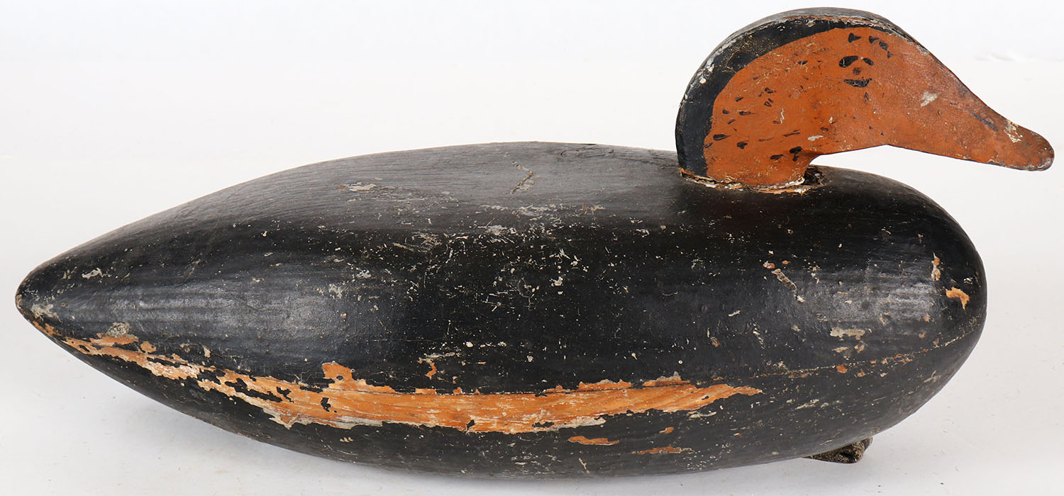 Early Black Duck by unknown maker, PE, hollow wood, old repaint. Grade: Very Good ++ - Value: 10 to 30