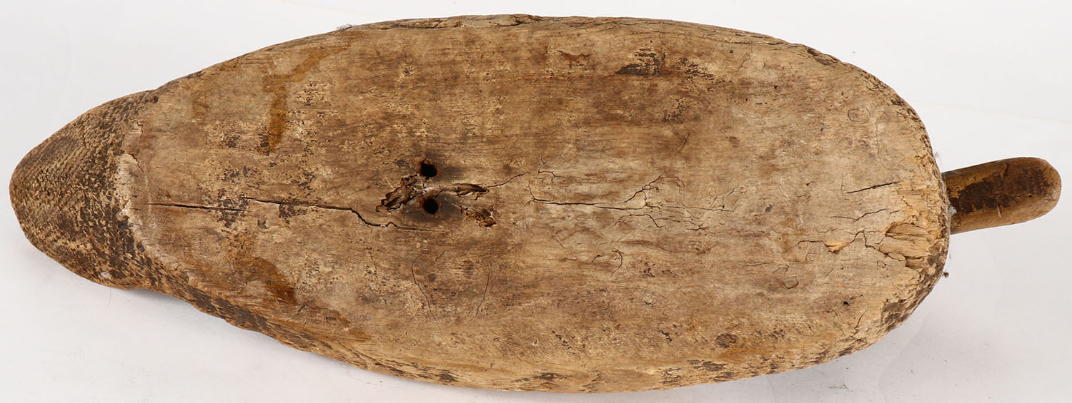 Pintail Drake by unknown maker, glass eyes are missing, solid wood, repaint. Grade: Good + - Value: 2 to 10